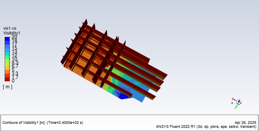 - Smoke Control Evaluation: Once the CFD simulation is complete, engineers analyze the results to assess the effectiveness of smoke control measures. This evaluation includes parameters such as smoke concentration, temperature distribution, and airflow patterns.